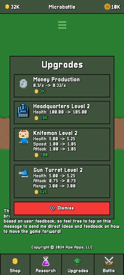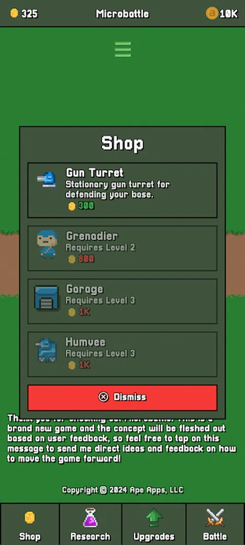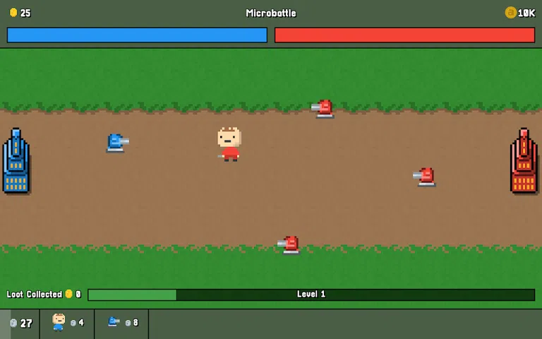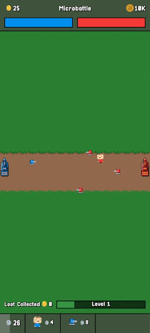 《微战》是一款采用像素艺术图形制作的有趣战斗模拟游戏。通过升级部队和解锁新单位来增强军队的力量。击败不同技能水平的军队以获得荣耀