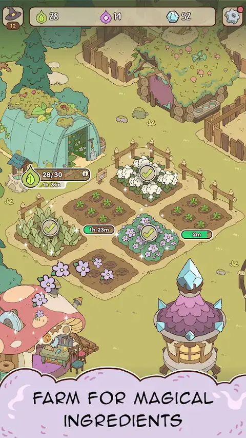 在 Potions & Spells 中放松身心,这是一款迷人而神奇的闲置游戏。? 掌握药水制作艺术,尝试施法,深入研究古老咒语和智慧的秘密。教你的女巫咒语和药水,并创建一个蓬勃发展的女巫集会。 为女巫建造一个神奇的避难所,为你的女巫创造你的梦想小屋。 管理和谐的女巫社区,吸引新成员并建立强大的友谊纽带。 种植一个充满神秘药草的花园,如薰衣草、迷迭香、鼠尾草和茄属植物。 特点: ?学习强大的咒语并增强您的魔法技能。 ? 训练和升级你的女巫,成为魔法大师。 ? 种植各种神奇药草,用于药水制作和施法。 ? 使用数百种装饰品建造和定制您的梦想小屋。 ? 吸引新成员加入您的部落并发展您的社区。 ?当你的女巫酿造、园艺和吟诵咒语时,享受舒缓和平的 ASMR 音效。 立即下载,让魔法展开