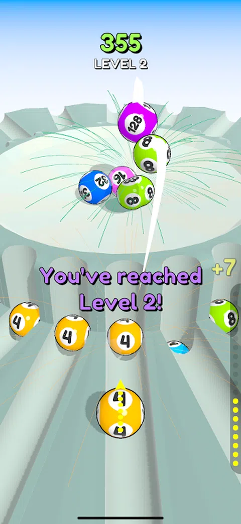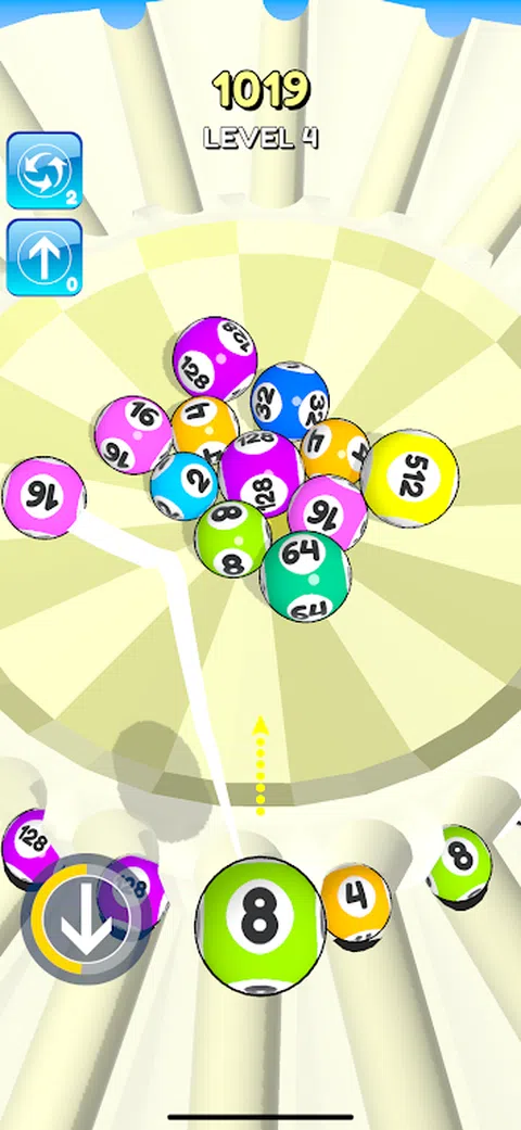 点击投掷球!通过合并相同颜色的球来得分和进步。 看看你能走多高 - 但要小心 - 如果你用完所有球的空间,游戏就结束了