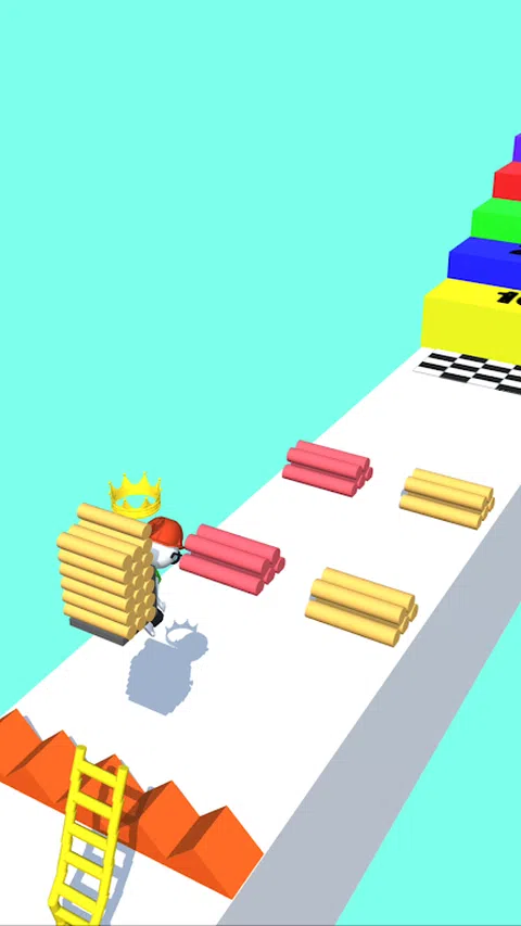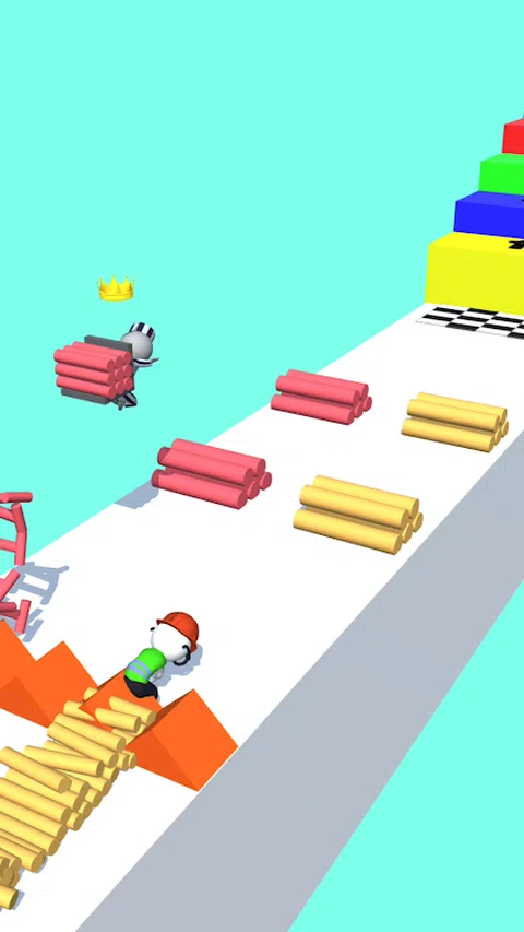 一款趣味跑酷游戏,跑赢对手,搜集尽可能多的圆柱才能获得高分。长按屏幕,搜集到的圆柱可以变成梯子,帮助角色攀登高处,避开障碍