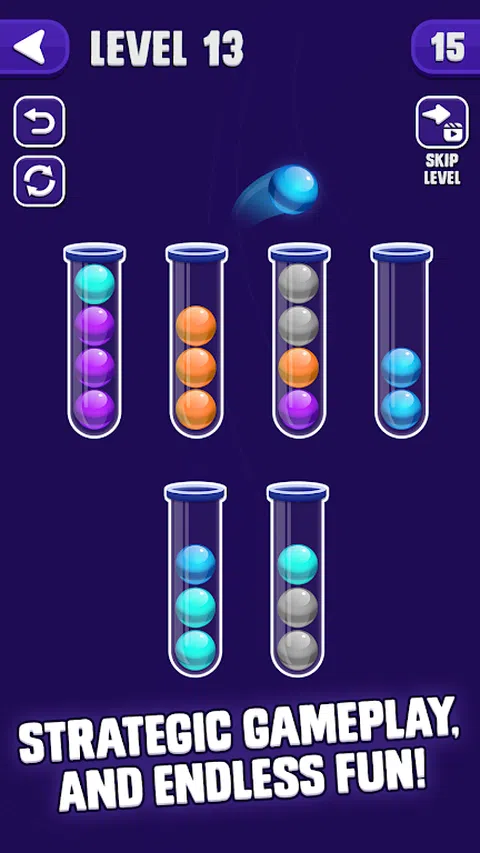 球短路:彩色拼图 Ball Sort Puzzle: Color Game 让您随时随地沉浸在简单但极具吸引力的分类体验中。这是轻松消磨时间、保持认知能力运转并通过分类提高解决问题能力的理想方法。 ? ? ? ? 球分类颜色分类拼图 - 颜色分类游戏,是一款有趣而放松的消磨时间的游戏。只需点击球并将相同的球切换到管子,使它们正确排序。它很容易学习,充满挑战。 ?怎么玩: 点击管以弹出顶球。 将球移动到顶部具有相同颜色球的另一个管子。 使每个管子变成单一颜色以完成关卡。 排序功能: ?让自己沉浸在充满活力的彩球主题中! ?征服 1000 多个排序级别! ?参与特殊挑战排序级别! ?离线游戏,享受终极便利! ?解锁无数分类成就
