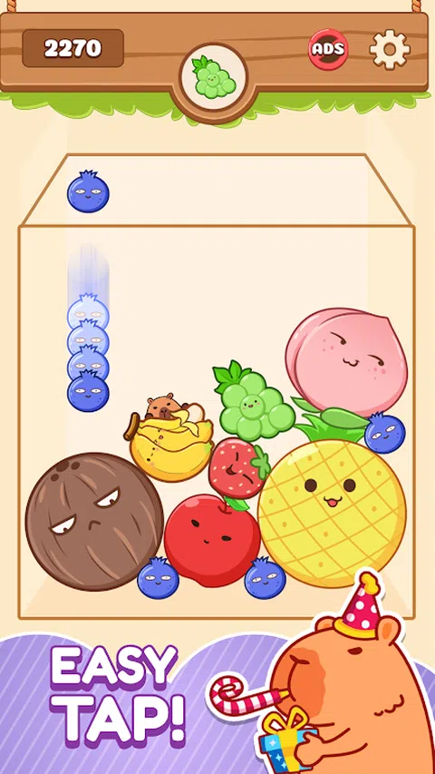 Fruits Merge: Capy Drop Master 将经典的 2048 游戏玩法与充满活力的水果和令人眼花缭乱的杂技融为一体,带来风味十足的移动益智体验!最后但并非最不重要的一点是,可爱的水豚会帮助你掉落水果! 怎么玩: 点击掉落:只需点击屏幕,选择水豚降落多汁水果的位置。 合并狂热:合并两个相同的水果以创建一个更大的新水果! 连击热潮:连锁合并以获得爆炸点和热带美食! 使用助推器:当水豚陷入困境时,使用有用的道具。 水果荣耀:志存高远,努力创造最大的甜瓜西瓜水果! Fruits Merge: Capy Drop Master 特色: 一键式乐趣:《Fruits Merge: Capy Drop Master》简单易学,可无限畅玩,只需单击一下即可控制整个游戏! 热带天堂:发现各种美味多汁的水果,等待在这个充满活力的岛屿 - 水豚的家中融合。 击败世界排名:用每日新高分挑战自己,攀登排行榜,看看谁才是水果王国的霸主! 全球果园:与世界各地的玩家竞争,看看谁能培育出最大、最多汁的水果,并获得炫耀的权利! 流畅 & 令人满意:享受无缝动画、清爽爆炸和令人愉悦的音效,让您着迷! 您准备好与可爱的水豚一起进行令人耳目一新的益智冒险了吗?立即加入 Fruits Merge: Capy Drop Master,踏上充满水果乐趣和战略挑战的旅程
