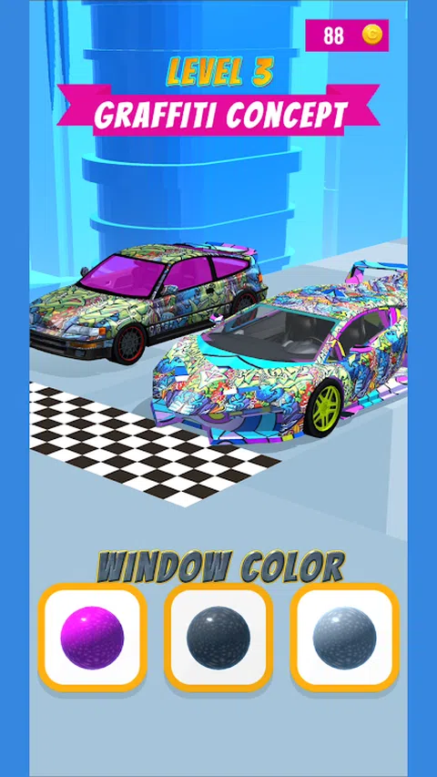 简单又有趣的汽车外观涂装比赛。根据每一个关卡的主题,对汽车外观的各个部分进行改色涂装,由品评委打分,分数高者胜出