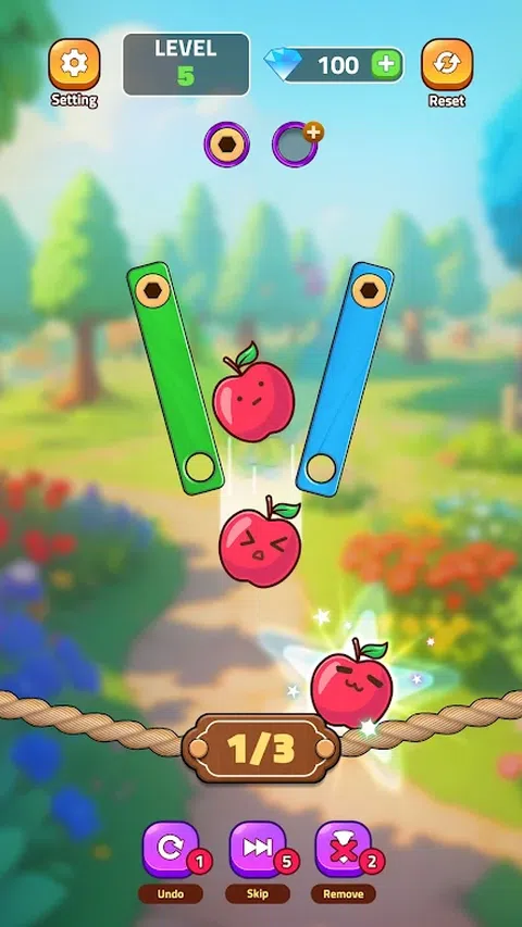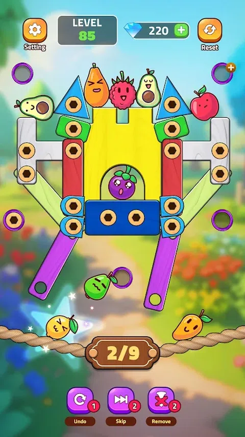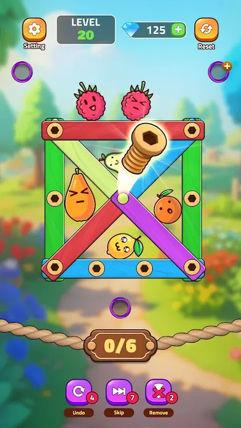 解锁收获水果!是一款独特而迷人的益智游戏,您的任务是拧下木板上的螺栓,以释放可爱的被困水果。Unscrew Fruit 拥有众多具有挑战性的关卡和简单而令人上瘾的游戏玩法,承诺数小时的娱乐性和奖励性解谜乐趣。 ? 销钉、螺母和螺栓的令人兴奋的功能: - 顺序策略:你必须在玩之前思考,否则你可能会经常失败。 - 各种级别:数百个难度逐渐增加的级别,挑战您的大脑和技能。 - 令人惊叹的螺栓皮肤:使用各种令人惊叹的螺丝皮肤定制您的体验。 - 可爱的图形:充满活力的图形与迷人而富有表现力的水果。 - 无限乐趣:享受从头到尾都着迷的无约束、令人振奋的游戏玩法。 - 完美脑筋急转弯:通过这款引人入胜的益智游戏磨砺您的思维并提高您的认知技能。 - 离线模式:随时随地玩,无需互联网。 ?赢得游戏的步骤: - 目标:按照正确的顺序拆下螺丝以释放水果。 - 拧开螺母和螺栓:有策略地拧开螺母和螺栓以释放木板,将水果从被困状态中解救出来。 - 从简单到超级困难,应对各种难度逐渐增加的关卡。 - 使用助推器:如果你卡住了,别担心