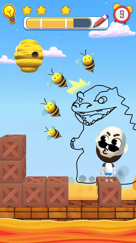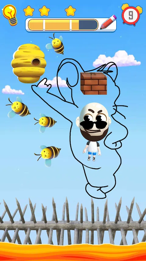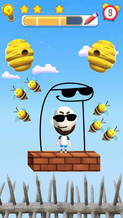 隆重推出“拯救人类:绘画拯救谜题”—您的绘画技巧将与具有挑战性的谜题相遇! 你是一个正在寻找新鲜和原创挑战的绘画拼图天才吗?你对自己的绘画能力感到自豪吗?是时候通过“Save Men: Draw to Save Puzzle”对您的创造力和智商进行终极测试了。? 这款游戏将逻辑谜题与绘画挑战融为一体。用你的大脑画出一条线,保护火柴人免受蜜蜂、荆棘、熔岩、箭和其他危险的威胁。您可以绘制障碍物、墙壁或任何保护措施,以确保有趣的人的安全。增强你的逻辑思维,提升你的创造力,锻炼你的大脑! 怎么玩: 画一条线:用一条连续的线完成拼图。按下开始绘制,完成后松开手指。 保护有趣的人:瞄准在人周围的空白处画画,保护他免受蜜蜂的侵害。 多种解决方案:发挥您的想象力!每个谜题可能有多个解决方案,挑战您的智商和创造力。发现各种令人惊讶和幽默的方式来解决难题