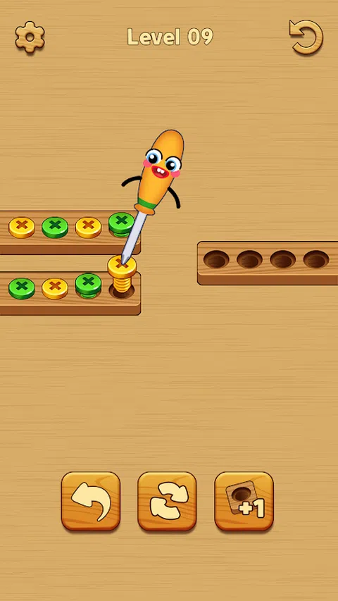 螺丝颜色分类是市场上新的免费益智游戏。这是一款具有独特而吸引人的游戏玩法的益智游戏,您可以在其中移除彩色螺丝,按颜色对它们进行分类,移动它们,并用木头填充它们。您所要做的就是注意颜色,对颜色进行分类,并将螺丝从一个木头移到另一个木头,直到颜色匹配。 这是一款非常有趣的螺丝拆卸游戏,适合所有年龄段,尤其是那些喜欢益智游戏的人。 怎么玩: 1. 点击最外侧的 1 个螺丝将其移出。 2.点击旁边有一个槽口和一个同色螺丝的木条来移动它。 3. 只有颜色相同且木条上有足够空间的情况下,螺丝才能与其他螺丝一起放置。 4. 如果您将相同颜色的螺丝完成到木条中,您将赢得游戏。 游戏特色 1. 螺丝、螺母和木头。 2.单指控制,简单却令人上瘾的游戏玩法。 3.多种关卡,考验你的能力。 4. 没有时间限制,按照自己的节奏享受螺丝颜色分类。 5.在业余时间训练你的大脑并减轻压力。 6.免费的 2D 休闲游戏。 了解移动顺序以及如何将相同颜色的螺丝组合在一起是完成此螺丝益智游戏的最快、最有效的方法。 您准备好加入螺丝颜色分类的多彩游戏体验了吗? 立即加入螺丝拼图,体验最轻松的时刻。训练您的大脑,让您的眼睛尽情享受,快乐的情绪将伴随您一整天。 现在就下载游戏玩吧
