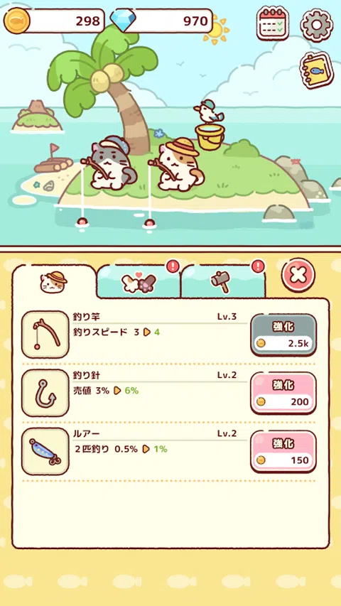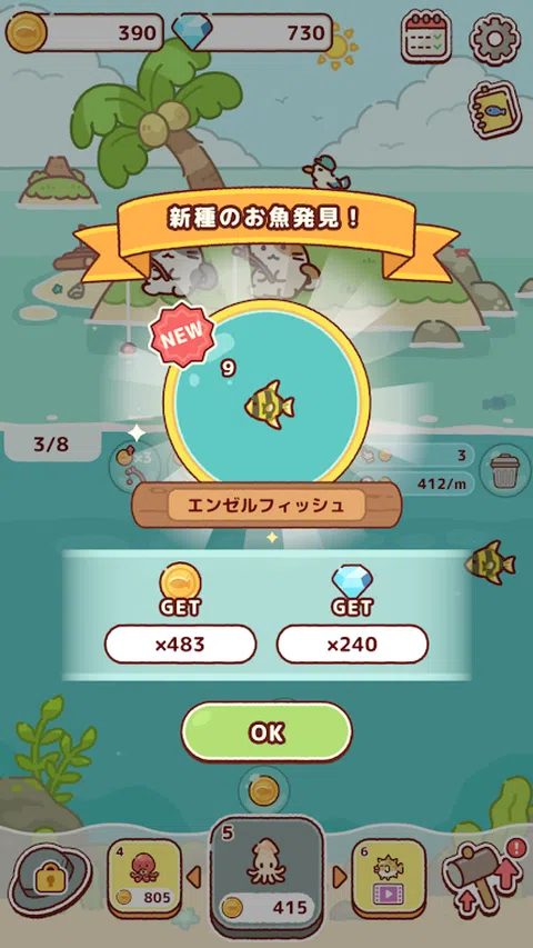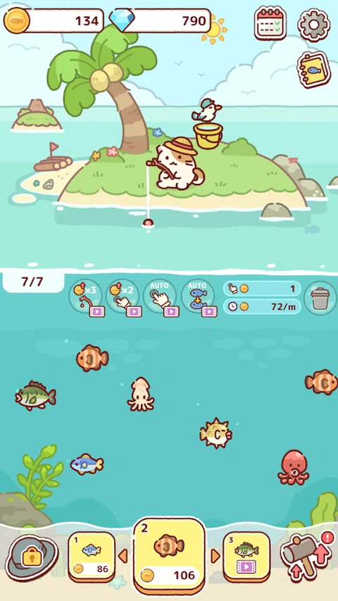 一只猫和他的海鸥伙伴正在一座小岛上等待捕鱼! 用手合并不同的鱼,帮助它们钓到大鱼 在这个岛上你会遇到什么样的鱼和朋友呢? ◆怎么玩◆ ① 将鱼饵投入海中以吸引鱼 ②同种鱼合并 ③合并许多鱼以发现新的鱼种 免费合并游戏,一边看猫悠闲地钓鱼一边合并吧 从小孩到大人都可以轻松玩