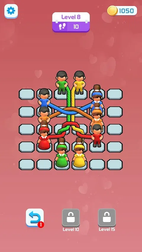踏上“爱情纠缠”的迷人旅程,您的目标是解开纠缠的绳索,帮助相同颜色的情侣团聚。浏览一系列精心设计的谜题,测试您的逻辑和问题解决能力。当您解开每个结时,享受美丽的视觉效果和舒缓的配乐,让爱情鸟在每个关卡中更加紧密地联系在一起