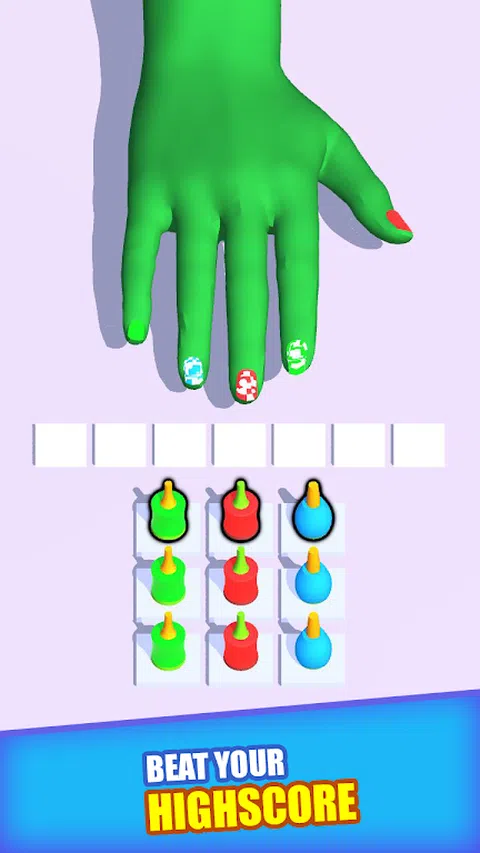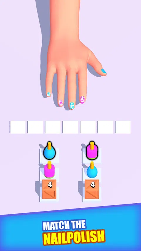 在这款指甲油匹配益智游戏中锻炼您的大脑。点击未被困住的指甲油以疏通它们。匹配 3 种颜色来绘制指甲。不要让您的托盘空间不足