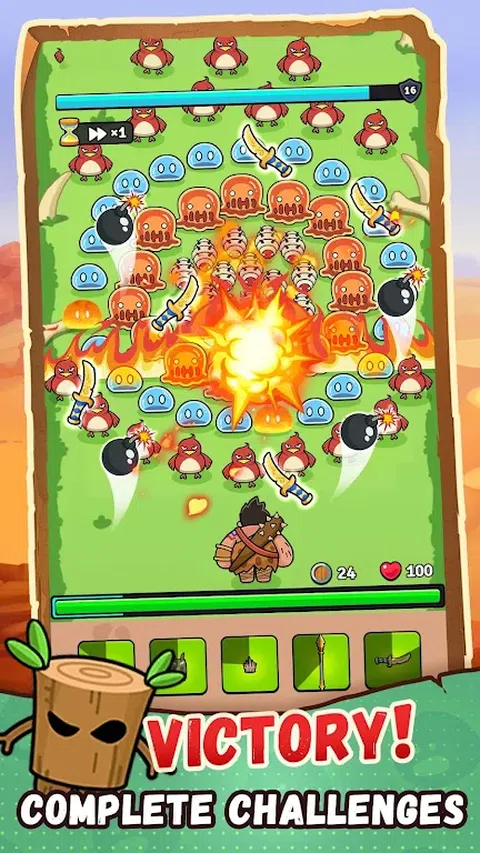背包战士是一款融合了战术和冒险元素的策略游戏?。玩家扮演原始部落战士的角色,击退来自怪物和敌对部落的一波又一波的攻击。背包战斗玩法简单易学,但具有高度战略性,考验您的反应能力、战略思维和资源管理技能?。 游戏特色 ? ?3x3 背包:玩家从 3x3 背包开始,携带武器以防御敌人。背包容量可以通过游戏奖励来扩展,让玩家可以携带更多的武器,面对更强大的敌人?。 ?武器组合:玩家可以将在背包战斗中通过战术获得的同类型、同等级的武器进行组合,升级为更高等级的武器,在策略游戏中增加战斗力?。 ?策略战斗:玩家需要根据敌人的类型和数量,明智地分配背包中的武器,并利用地形和战术进行策略和角色扮演战斗?。 ?多种武器:策略游戏拥有多种类型的武器,每种武器都有独特的攻击方式和效果。玩家可以选择符合自己战斗风格的武器组合,在一波又一波的背包战斗中防御更强大的敌人?。 ?丰富的关卡:策略游戏拥有丰富的关卡设计和递进的难度曲线,让玩家在背包战斗的挑战中不断提升自己的技能?。 ?这款策略游戏为您提供机会,发挥您的能力,磨练您的生存本能,并成为终极背包战士?!那么,你准备好用你的战术和策略来挑战令人振奋的背包之旅了吗?让袋子碰撞,让战术展开,准备史诗般的对抗,立即下载这款策略游戏,参与令人难忘的史前战争体验