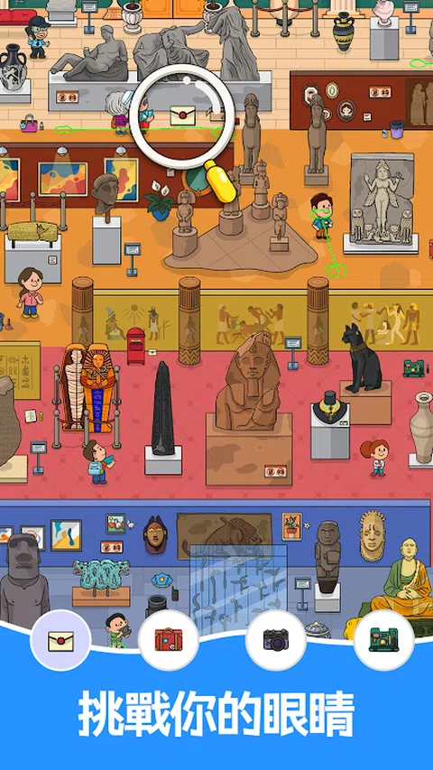 寻物探秘,好玩又上瘾, 这款寻宝游戏有超多有趣的关卡等你来挑战,你能找到所有的隐藏物品吗?解压又放松,快来开始你的寻宝大作战吧! 在这个寻宝解谜游戏中,你唯一的任务就是找出游戏页面下方陈列的各种物品。点击隐藏的物品,完成在所选地图各个美丽场景的搜索,并找出所有隐藏物品,即可通关!你能成功找到所有的隐藏物品吗?眼力考验,挑战满满,快开启你的寻宝探秘之旅吧! 作为一种新式搜索寻物游戏,寻宝探秘 为你提供了多张动态地图以及丰富有趣的游戏场景,沉浸式寻宝,好玩有趣不单调!海量的神秘寻宝地点等你来探索!寻找各种隐藏的宝藏,解锁新地图,寻物探宝,根本停不下来! 超多精美地图供你选择,寻觅探索找不停!数百种隐藏物品等你来发现!快乐寻宝,告别烦恼!如果你喜欢玩寻物游戏、找不同或找茬游戏、侦探游戏或者其他寻宝解谜游戏,这款寻宝游戏绝对是你锻炼脑力的最佳选择! 主要特色 全情享受寻物游戏的乐趣! 离线可玩,可随时随地畅玩的寻宝游戏! 规则简单,一秒上手。在各个场景中找齐要求数量的隐藏物品,即可通关! 无年龄限制,老少皆宜。快叫上你的家人、朋友一起玩这款图片类益智游戏吧! 多种难度,眼力挑战。隐藏物品被找到的越多,你可挑战的地图场景也越多、越难。 精心设计,诚意满满。施展你的寻宝技巧,探索地图中这些用足心思、精心绘制的隐藏物品吧! 超强道具,好用又贴心。剩最后一个怎么都找不到?不用怕!一键使用提示功能,江湖救急超贴心! 缩放功能。任意放大或缩小当前搜索场景,藏得再深的宝藏也无所遁形! 多重关卡,丰富场景。动物园、海洋世界、儿童乐园等超多主题地图等你来玩! 多种游戏模式。自由选择是否需要时间限制,是开心一下的放松消遣还是紧张刺激的分秒必争,都由你做主! 怎么玩 观察并寻找所需的隐藏物品 使用提示,快速定位隐藏物品 通过放大、缩小、滑动来查看地图的每个角落 找全所有隐藏物体即可通关 探索我们每周更新的隐藏物品地图,享受寻找宝藏的快感! 寻宝探秘,这款有趣的找不同寻宝游戏绝对是你提高专注力及观察力的完美选择。如果你是休闲找茬游戏的忠实粉丝,你一定也会爱上寻宝探秘!打发无聊,锻炼脑力,还等什么快来玩吧! 快来开始一场超级好玩的寻物寻宝大冒险吧!需要你带上一点耐心,加上一点小心,好好看看地图,直到找出所有的隐藏物体!寻宝探秘找啊找,快乐解压没烦恼