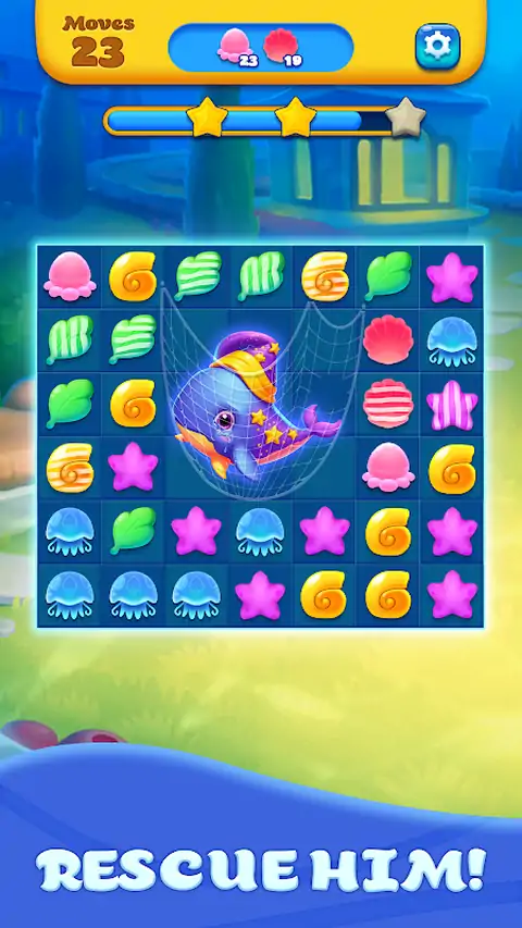 潜入 Ocean Match Blast 充满活力的深处,这是一款令人上瘾的匹配 3 益智游戏冒险游戏,背景设置在迷人的水族馆世界中! 踏上穿越多彩珊瑚礁和宁静水域的旅程,匹配 3 个外观相同的方块以清除棋盘。凭借其直观的游戏机制,所有年龄段的玩家都可以享受策略性交换和匹配图块的挑战,以实现关卡目标并获得胜利。 在这个身临其境的水生宇宙中前进,体验完成越来越具有挑战性的关卡的快感。从营救可爱的海洋生物到解锁隐藏的宝藏,每个级别都提供令人兴奋的新挑战,让您着迷。凭借令人惊叹的图形和舒缓的音效,《海洋消消乐》提供了一种放松的方式,让您沉浸在海洋的宁静之美中。 Ocean Match Blast 拥有数百个充满乐趣和刺激的关卡,为益智爱好者和休闲游戏玩家带来无尽的娱乐。无论您是在寻求快速的脑筋急转弯还是休闲的游戏体验,都可以潜入海洋消消乐的迷人世界,让欢乐的浪潮席卷您