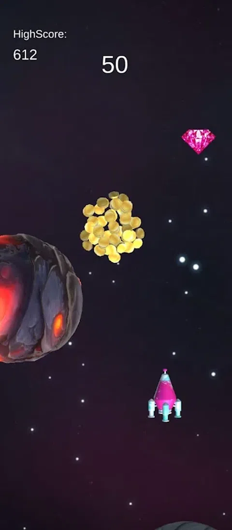 欢迎来到令人兴奋的太空冒险“SpaceFun”,玩家将指挥一艘未来派火箭在浩瀚的宇宙中航行。 踏上穿越迷人星域和遥远星系的旅程,每一刻都是对反应和策略的考验。作为这艘时尚飞船的船长,玩家必须巧妙地躲避威胁其任务成功的无数障碍。从迫在眉睫的小行星到不可预测的太空碎片,每个障碍都提出了需要克服的新挑战。 通过直观的触摸控制,玩家可以精确而敏捷地操纵火箭穿过危险的虚空。滑动以躲避即将到来的威胁,穿梭于狭窄的空间,并执行大胆的机动以保持领先于危险。每个决定都很重要,因为玩家需要与时间赛跑,努力达到新的里程碑并在排行榜上名列前茅。 沉浸在令人惊叹的视觉效果和动态配乐中,伴随着你的宇宙冒险之旅。从遥远星星的充满活力的光芒到若隐若现的天体的不祥阴影,每一刻都是令人叹为观止的奇观。当你险些逃脱灾难时,感受肾上腺素的激增,并在追求星际荣耀的过程中将你的技能发挥到极限。 你准备好踏上终极太空冒险了吗?系好安全带,启动推进器,为“SpaceFun”做好准备 - 宇宙是您的游乐场,星星是您的征服对象