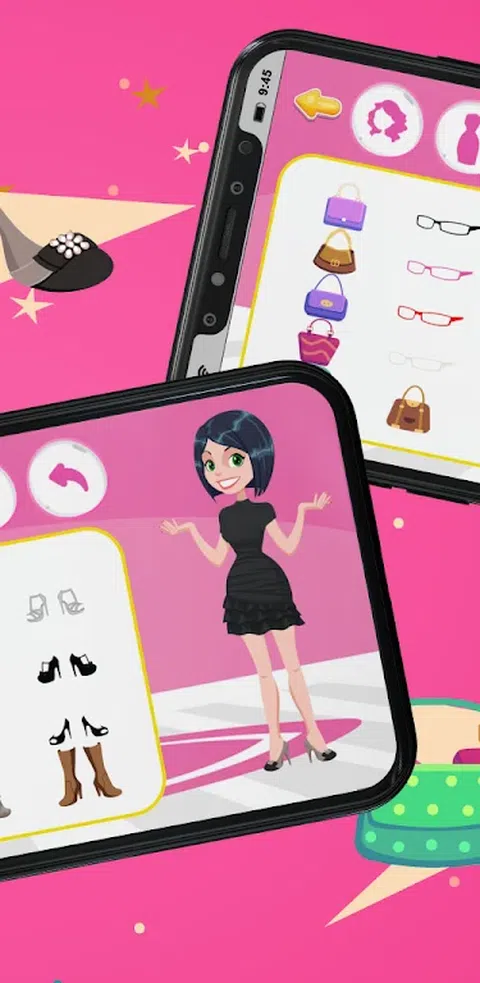 头发,衣服,鞋子和包包有多种选择!游戏包含了每个女孩梦寐以求的衣橱!用户可以从这些选择中打扮女孩,并与朋友和家人分享结果