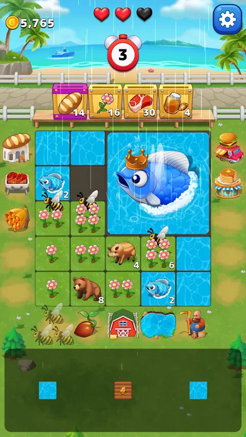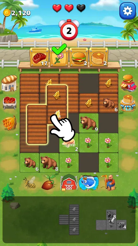Block Harvest 是一款提供全新体验的方块益智游戏。 根据您放置的方块,农作物可能会生长得更丰富,动物可能会吃掉农作物。 熟练地解决方块拼图,饲养农作物和动物,收获更多的资源。 响应居民的请求,赚取金币并获取新物品