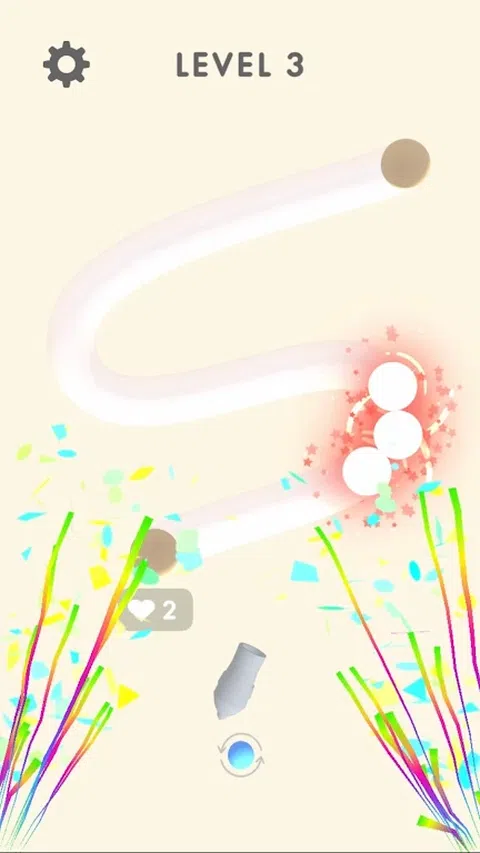 在这些球到达黄色骷髅结构之前,用其他球消除所有沿着给定路径(该路径在除最后一个关卡之外的所有关卡中都清晰可见)在屏幕上滚动的球警告迎面而来的球。玩家一次可以携带两个球,并且可以随时切换。一旦一个球到达头骨,其他球就会跟随,玩家就会失去一条生命。为了防止球到达头骨,玩家可以通过从石青蛙神像的嘴里向球链发射彩色球来消除球,球链将继续向前推进,直到玩家填满黄色条,这就是球的时间将停止在屏幕外制作。当三个或更多相同颜色的物体接触时,它们会爆炸,作为连锁反应的一部分,可能会引发其他爆炸。当条形填满后,玩家消除屏幕上的所有球,级别就完成了。 收集硬币(通常通过缝隙)有奖励,通过其他球的缝隙引起爆炸,以及连续每个连续球总是引起爆炸的连锁(硬币和连锁奖励是填充条的快速方法) .如果玩家在王牌时间内完成关卡,也将获得时间奖励 - 根据级别从三十秒到四分钟不等