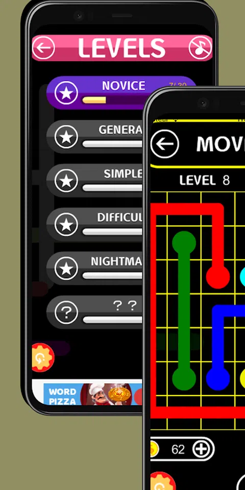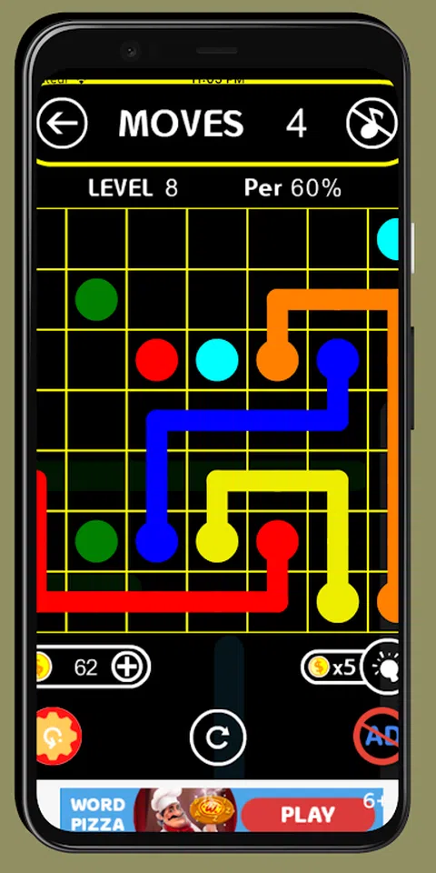 谜题:连点 为了改善并保持您的大脑活跃,“Linked the Dots*”提供了难度不断增加的谜题,这些谜题既简单又引人入胜。 Tied the Dots 是一款非常简单的益智游戏: 1. 连接相同颜色的点或圆块。 2. 你必须连接所有的点来解决每个谜题。 3.连接线如果超过或交叉就会断开