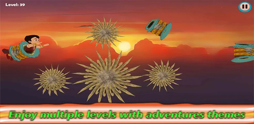 超级比姆是所有星系中英勇的超级英雄。他和他值得信赖的朋友 Chutki、Raju、Jaggu、Kalia 和 Dholu-Bholu 前往超出我们想象的梦幻之地,而通往这些领域的唯一途径是通过神奇门户。 Super Bheem 是一个超级英雄,勇敢,聪明,喜欢冒险和有趣。他会飞,他拥有超人的力量和反应能力。 超级比姆拥有飞行的超能力。只需点击并精确瞄准,即可帮助超级比姆到达下一站。避免移动和奇怪的物体,并精确点击以躲避快速移动的障碍物。超级比姆飞行英雄,游戏只需躲避移动障碍和大炮的超级英雄比姆,成为飞行超级英雄。 Super Bheem Flying Hero 游戏是一款快节奏的街机游戏,具有炫酷的 3D 动画和游戏玩法。 我们是 Super Bheem 角色的被许可人,可以开发和发布游戏。版权所有海得拉巴 Green Gold Animation Private Limited