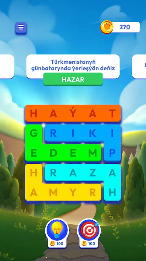 “Ugurly Soz”是一款新颖独特的文字游戏,向您介绍土库曼语的美妙之处。Android 平台非常适合您,因此您可以轻松使用它。 请请自画地电影全电影手机,然后关闭它。 在一个阶段中,你将测试你的知识和你的快速思维能力,所以她会用新的有趣的测试欢迎你。 “文字”游戏特色: 土库曼斯坦是土库曼斯坦的首都。 我们将于 2020 年 11 月 12 日开始使用该产品。 简单我们的用户友好界面使游戏变得更加有趣和简单。 每日更新内容,包含新问题和答案。 有机会与朋友和家人竞争并分享您的成就。 但如果您想提高语言能力并享受愉快的时光,“Word of Success”将是您的绝佳选择。