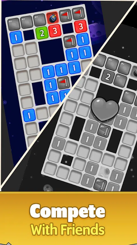 扫雷:发现隐藏的宝石! ? 体验重新构想的经典:以新鲜的方式重新发现永恒的扫雷游戏!我们的现代改编将原作的怀旧与时尚的设计和令人兴奋的游戏玩法相结合。 ? 各种关卡:潜入一个不断扩大的挑战世界。从适合初学者的网格到令人费解的专家级别,每个人都能找到适合自己的游戏。你能征服他们吗? 与时间赛跑:在策略性地揭开图块时磨砺您的思维。每一步都很重要!你会找到一条安全的道路还是撞到地雷?时间在流逝—快点思考! ?特点: 时尚的设计:干净的视觉效果和直观的控制使游戏变得轻而易举。 每日挑战:每天用新鲜的谜题测试你的技能。 可定制的主题:使用各种主题个性化您的游戏面板。 成就:解锁成就并炫耀您的扫雷能力。 提示和撤消:通过有用的提示和撤消动作摆脱困境。 ? 竞争和分享:挑战朋友,攀登排行榜,分享你的胜利。谁将成为最终的扫雷冠军? 准备扫除地雷了吗?立即下载扫雷,开始令人上瘾的冒险