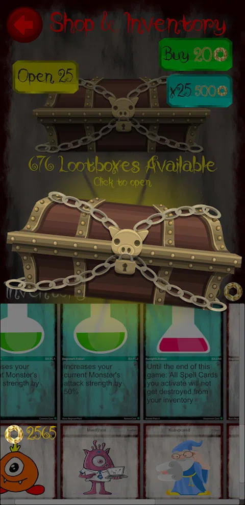 战术怪物竞技场是一款卡牌收集游戏。 您可以在战利品箱中找到大量独特的法术和怪物卡牌,这些卡牌是通过击败敌人而获得的。 卡牌的效果、强度、防御和再生值以及稀有度和版本各不相同。 有超过 1500 种不同的可能组合,其中一些极为罕见,因此最好立即开始收集