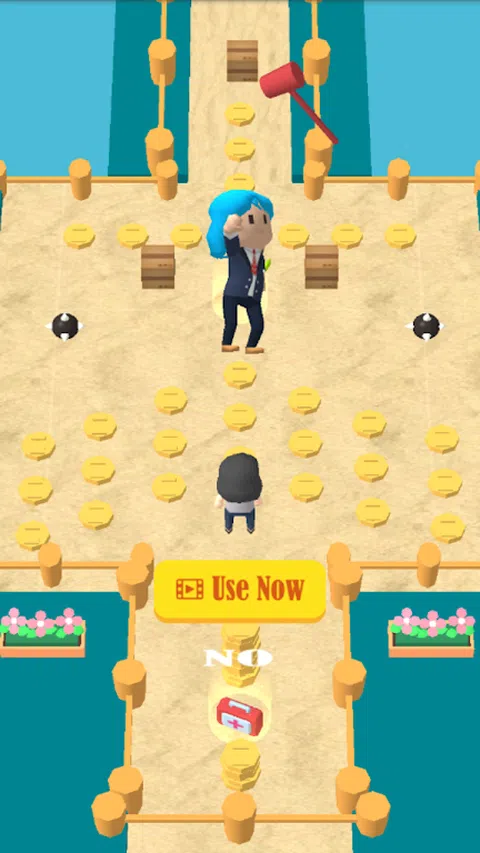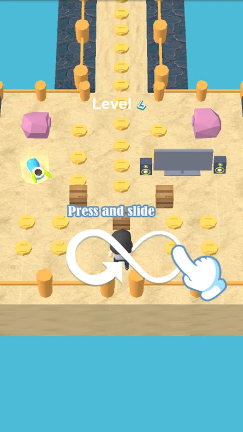 左右滑动屏幕来控制小人的移动,举起砖块避开陷阱障碍物,到达终点