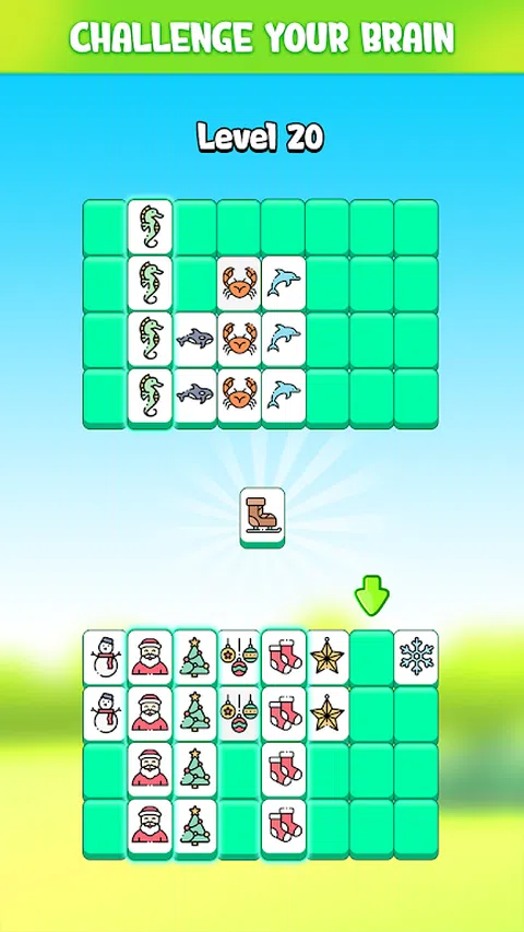 在有限的时间内将具有大量照片的图块成对连接。如果您合并所有相同的图块,您就可以赢得关卡!一层又一层,成为图块大师! 节日之旅正等着你!玩起来很简单,但很难掌握。潜入这个 Tile Connect Puzzle & Match Mahjong Brain Game 的迷人组合,尽情享受数小时的乐趣。 Tile Connect 的功能包括: - 各种图像,例如动物,花卉,水果,旗帜,. - 独特而可爱的背景。 - 每天随机奖金和免费旋转。 - 惊人的工具可帮助您赢得困难级别。 比对手玩得越来越快,以获得更多硬币和图块,以解锁更多图块和像素艺术。立即下载并享受图块挑战