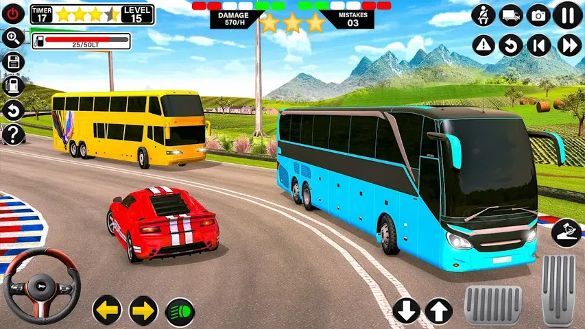 欢迎来到城市公交车驾驶游戏!在这里,您可以在公交车模拟器中享受在艰难的越野地形和繁忙的城市街道上驾驶的快感!准备好体验与众不同的巴士游戏,并在驾驶游戏中控制每个弯道、站点和路径。 现代巴士游戏离线故事: 在这款引人入胜的巴士游戏中,您将扮演经验丰富的真正巴士司机,任务是在巴士驾驶游戏中以安全有效的方式在繁忙的城市中运送乘客。驾驶车辆穿越拥挤的区域,体验引擎的力量,巧妙地驾驭车流,按时到达目的地。巴士模拟器终极版的每条城市路线都有自己的一系列困难,例如拥堵的道路、意想不到的障碍和不稳定的天气。 客车模拟器越野模式: 然而,冒险并没有结束。在激动人心的越野巴士驾驶模拟器中继续探索巴士驾驶游戏的郊区及其他地区,其中崎岖的地形、蜿蜒的路径和陡峭的山丘将最大限度地挑战您真正的巴士司机驾驶技能。在整个艰难的旅程中确保乘客的安全和舒适是您的首要任务。 现代巴士游戏停车模式: 在此巴士停车游戏模式中,您将面临一系列在不同城市环境中设置的越来越困难的停车场景,这将测试您的巴士司机驾驶技能。每个级别都提出了独特的挑战,测试您在狭窄的小巷、拥挤的停车场和复杂的十字路口驾驶公交车的能力。您的目标不仅是准确停车,还要在指定的时间限制内停车,随着您在公交车停车游戏中的进展,赚取积分并解锁新的级别。 教练巴士模拟器游戏特色: 1. 逼真的城市和越野环境 2. 您可以从巴士游戏的车库中选择您最喜欢的巴士 3. 享受逼真的巴士操控和物理效果 4. 逼真细致的乘客 AI 系统 5. 令人惊叹的图形和身临其境的音效 6. 逼真的 AI 交通和行人系统 7. 方向盘和按钮控制 巴士游戏车库和定制: 用多种型号和颜色改造您的巴士收藏,每种都有自己的操控品质和载客量。升级您的巴士,为现代巴士模拟器终极版的所有乘客提供更舒适、更高效的旅行。有效的时间管理将帮助您在巴士模拟中获得奖励并开辟新路径,这将让您探索巴士瓦拉游戏的巨大地图。 越野巴士模拟器离线游戏: 这是终极城市巴士驾驶游戏和离线越野巴士游戏!无论您是经验丰富的司机还是巴士模拟公共交通世界的初学者,都可以坐在方向盘后面,启动引擎,开始一段不可思议的旅程。每次乘坐都是一次冒险,在长途汽车模拟器中等待被发现。令人惊叹的视觉效果、逼真的物理效果和令人难以置信的详细探索世界,使这款游戏成为巴士瓦拉游戏无与伦比的模拟体验