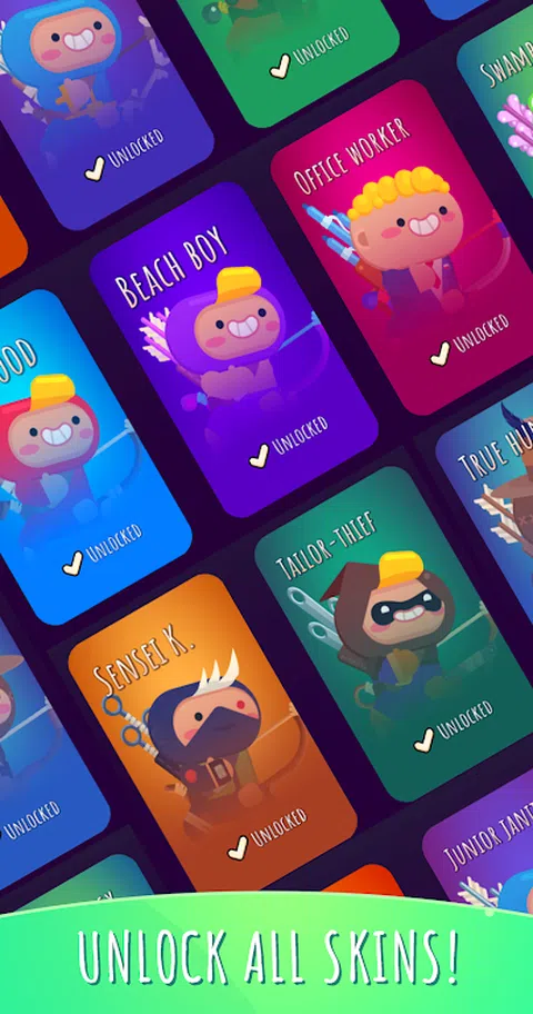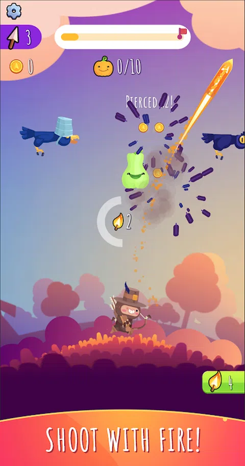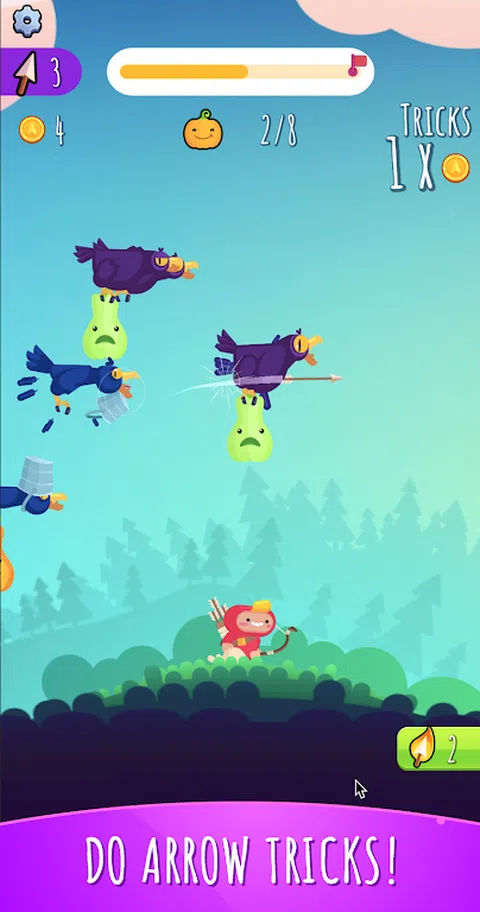 在一个邪恶的乌鸦直接从花园里偷走南瓜的世界里,只有一个英雄可以用他精确的弓箭恢复秩序。 在这款有趣而令人满意的射击游戏中成为英雄!与乌鸦战斗,夺回珍贵的蔬菜! 游戏特色: 乌鸦猎人是一款轻松的射击游戏,您需要狩猎并射击乌鸦以取回被盗的南瓜。这些鬼鬼祟祟的乌鸦很容易被吓到—如果你没吓到,它们就会飞走。所以要仔细瞄准! 三支箭:如果击中乌鸦,您将返回三支箭。通过刺穿多只乌鸦来表演技巧,以赚取更多金币! 跳弹箭:箭从头上顶着水桶的乌鸦身上反弹,击中邻近的乌鸦。胖乌鸦更难 - 你需要击中它们两次。使用这些功能为您带来优势! 奖励:射箭获得金币奖励!用您赚取的硬币为您的英雄解锁不同的皮肤,并轻松时尚地射击! 特殊箭:使用特殊箭以慢动作射击,获得更多满足感。 美丽的地点:在郁郁葱葱的绿色森林中追逐乌鸦,穿过秋季岛屿,最后到达乌鸦小偷居住的冬季岛屿。完成所有关卡以拯救所有南瓜! 《乌鸦猎人》不仅仅是一款射击游戏,更是一场令人满意的复仇冒险。这款激动人心的射箭游戏会让您感到成就感和喜悦! 加入狩猎,享受击落那些讨厌的乌鸦的满足乐趣