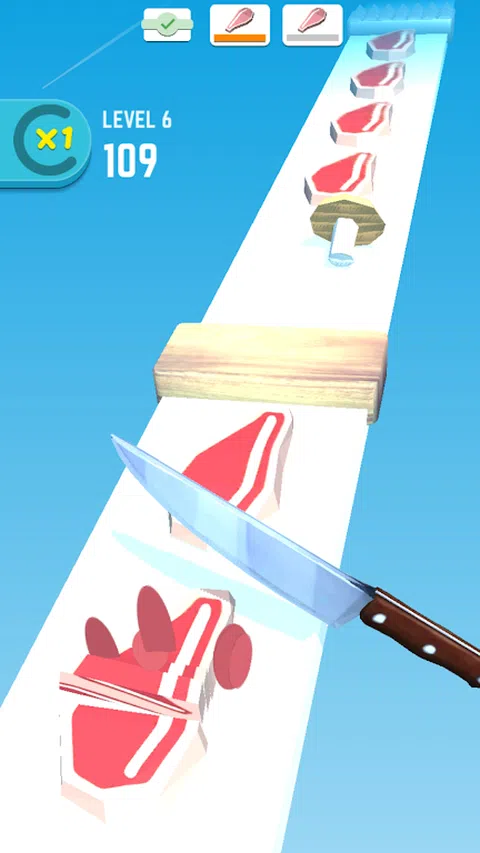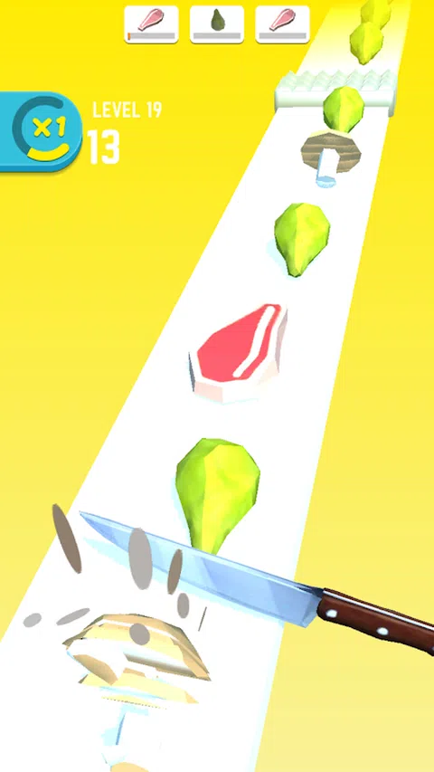 这是一个非常忙碌的后厨,有切不完的大量食物。点击屏幕,你的厨师刀就会飞快落下,长按进入快速切菜模式,只有切开所有的食物,成功避开所有的障碍,才能完美通关