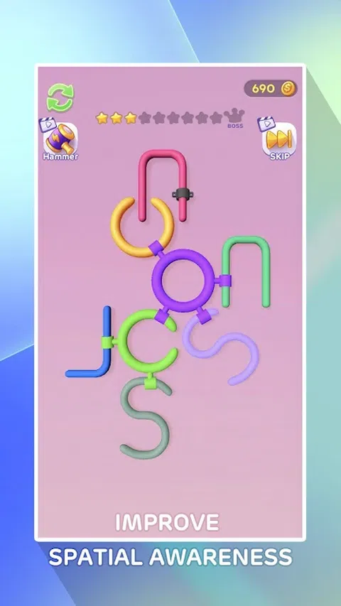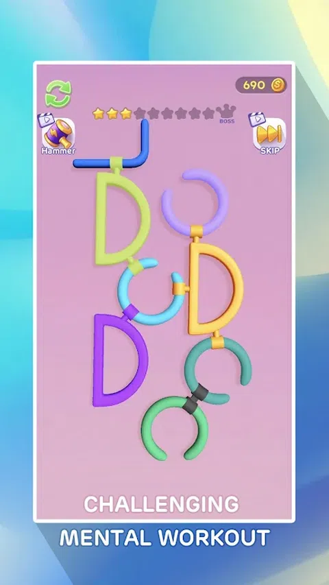 Unlock Circle 3D 拼图以其复杂的 3D 设计挑战玩家,需要空间推理和操纵技能。 拼图游戏的核心是“旋转圆圈以解锁”的概念。玩家必须精心旋转和操纵相互连接的圆圈,以实现所需的配置。 这个谜题具有一系列相互连接的圆圈,必须小心地旋转和解开这些圆圈,以揭示隐藏的解决方案。 凭借其引人入胜和刺激的性质,Unlock Circle 3D 拼图非常适合拼图爱好者和寻求具有挑战性的脑力锻炼的人。 Unlock Circle 3D 拼图经久耐用且制作精良,可确保您享受数小时的愉快游戏时光,是适合所有年龄段的绝佳礼物