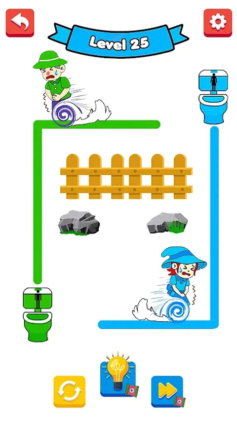 在这个“画”游戏中,画一条路径到达厕所冲刺比赛。 在此厕所拉动比赛抽奖益智游戏中,您的主要任务是找到到达厕所的最短途径。在厕所游戏中轻松绘制回家路径。如果物体及时到达马桶,那么您将成为马桶桥抽屉专家。 怎么玩 画到家或画到小便大师? 1. 点击屏幕开始画画小便 2. 向 Toilet Games Pee Master 画一条线 3