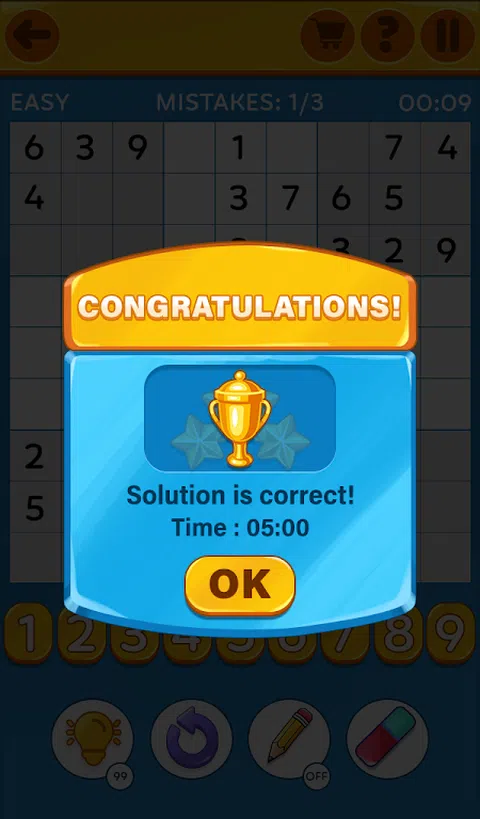 这款数独逻辑益智游戏适合喜欢数字并擅长数字谜题的人。这确实是一个经典的数字拼图,但有一些新的游戏方式和功能。 随身携带数独谜题。您一定会喜欢玩这款设计简约的数字拼图,它具有舒缓的颜色和易于理解的用户界面。众所周知,目标很简单。目标是完成一个网格,其中的每一行、每一列以及九个 3x3 区域中的每个区域都包含从 1 到 9 的所有数字。 最好的部分是您可以在游戏时选择难度级别。经典的数独游戏,适合初学者和高级玩家。 这个数字匹配数独益智游戏还有什么 - 9x9 网格,设计简单 - 不同的难度模式 - 对任何单元格做特别说明以备将来参考 - 擦除功能可消除您的错误 - 如果您认为自己犯了一个错误,撤消功能可以返回 - 提示功能可在您完全卡住时寻求帮助 - 统计功能来跟踪您的最佳游戏玩法(花费的时间和赢得的游戏数量) 令人惊讶的事实是,玩数字游戏可以锻炼大脑并改善逻辑思维。看看你能多快解决这个数字谜题。现在就开始玩经典的数字游戏数独
