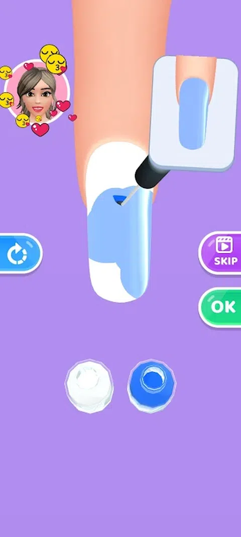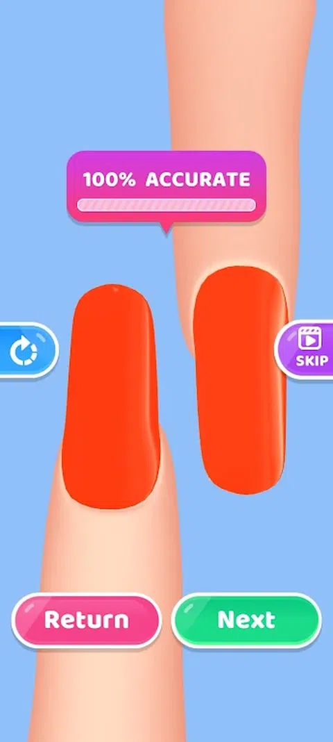 在方形画布上混合您选择的颜色,并尝试匹配指甲的颜色。 指甲颜色越匹配,得分越高。 玩得开心