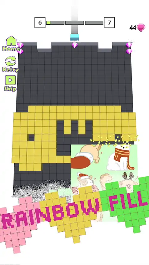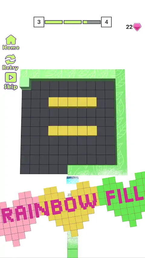 滑动方块填满迷宫,请不要让方块碰到障碍物,当把黑色的方格都涂上彩色图案就可顺利通关。 1.益智趣味; 2.富有挑战性; 3.关卡丰富
