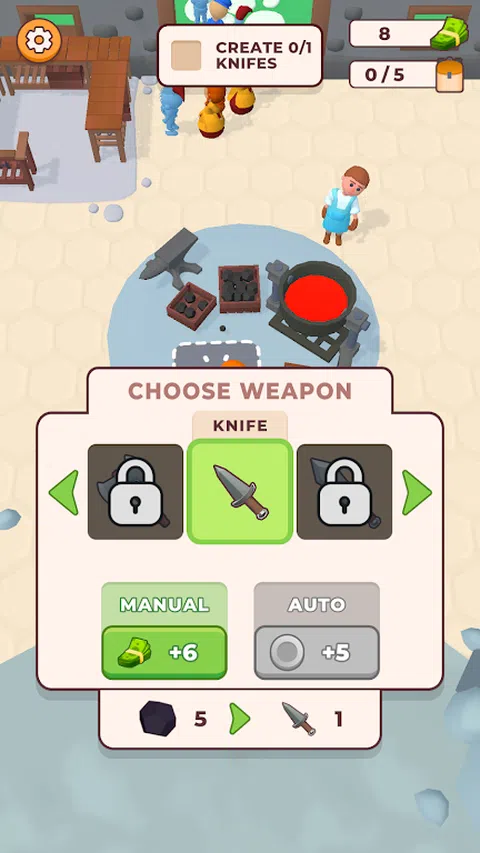 《铁匠闲置:剑客》是一款矿工大亨游戏,将采矿游戏的乐趣与制作武器的刺激相结合。在这个游戏中,你扮演铁匠的角色,在矿井中开采各种矿石和金属,然后将它们制作成强大的刀片。您想成为剑术大师和刀匠吗? 随着游戏的进行,您将解锁新武器和升级,让您可以创造更强大和独特的武器。游戏具有独特的制作系统,可让您自定义武器,使每个武器都真正独一无二。成为石头矿工、手工武器制造商、剑术大师和闲置刀片采矿大亨! 在《铁匠空闲:造剑者》中,您将有机会探索不同的位置,例如商店,您的助手将在其中出售您制作的武器,以及将熔化的金属倒入模具中以制作刀片的冶炼区。剑匠或刀匠 - 你选择什么? 在玩游戏时,您将有机会升级采矿工具,提高效率并开采更多资源。您还可以扩展库存,使您可以存储更多资源并立即制作更多武器。成为石头矿工、手工武器制造商、剑术大师和闲置刀片采矿大亨! 游戏中有各种武器可供制作,每种武器都有自己独特的能力和属性。随着您的进步,您将解锁新武器,并能够制作您最喜欢的更强大版本。 在《铁匠空闲:造剑者》中,您还将有机会参加各种活动和挑战,获得奖励并解锁新内容。游戏旨在提供挑战和回报,并提供大量成长和进步的机会。 因此,如果您正在寻找一款有趣且引人入胜的闲置大亨游戏,它结合了采矿、制作和策略,那么《铁匠闲置:剑制造商》是您的完美选择。立即下载,开始您的铁匠大师之旅
