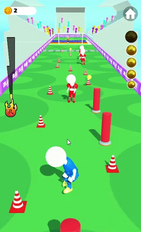 享受新的跑步者带来的新鲜旋转、奔跑、猛冲和运球以躲避障碍物和防守者,然后在关卡奖励点球大战结束时将足球射过机器人守门员