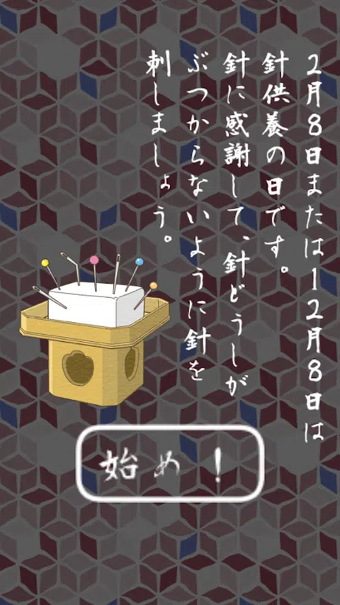 “打针追悼会”是一种发育障碍(自闭症、阿斯伯格综合症、注意力缺陷多动障碍(ADHD)、 这是一款针对有学习障碍和抽动障碍儿童的治疗和教育游戏应用程序。 这是一款适合残疾儿童的简单游戏应用程序。 ◆ 规则超级简单 ◆ 一个简单的游戏,将针插入旋转的豆腐中,使针不会相互碰撞。 2 月 8 日或 12 月 8 日是 Harikuyo Day。 感恩针头,注意不要相互撞到,扎进豆腐里! 当针相互接触时,游戏就结束了。 旨在通过刺破配额针来清除舞台