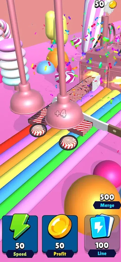 你必须点燃烤箱。 你必须准备好你的刀 每个人都想要你的著名糖果。您按下的越多,生产线的速度就越快