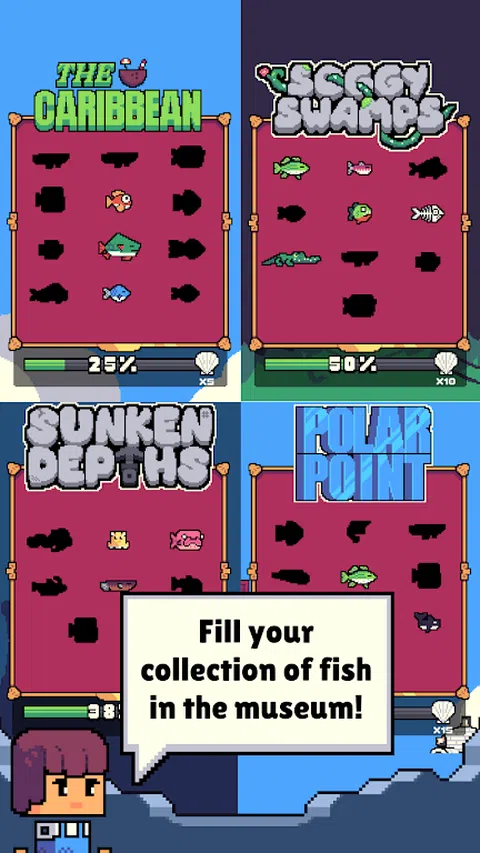 体验 Holy Mackerel 的世界,这是一款具有复古风格像素艺术的独特移动钓鱼游戏。探索各种生物群落,每个生物群落都有自己独特的鱼类。解锁新的生物群落,升级装备,并寻找臭名昭著的圣鲭鱼,镇上最有名的鱼,掌握持续运动钓鱼机制的时机和策略!结识拥有商店的有趣 NPC,并享受让世界栩栩如生的俏皮卡通视觉效果。无论您是喜欢策略性捕鱼,还是只是想要一个有趣的风格化游戏,Holy Mackerel 都是您的下一次冒险