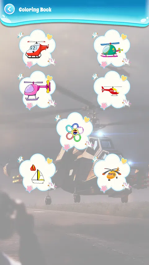 着色飞行直升机是一个适合所有年龄段的有趣应用程序。凭借各种吸引人的直升机图片和吸引人的颜色,您可以花费数小时享受绘制和着色飞行直升机的乐趣。此应用程序还提供各种功能,例如颜色选择、飞行直升机图像的选择以及贴纸、背景的选择等等。立即开始绘画和着色