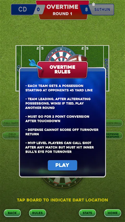 美式激情与经典英式酒吧游戏的完美结合 Suthun Gridiron Darts 模拟足球游戏,通过现实生活与朋友在家里或当地的酒吧投掷飞镖。扮演进攻、防守或特殊球队,得分达阵、射门甚至安全! 进行长距离进攻,或通过六挡失误快速得分。美式足球的所有主要元素都可以在 Suthun Gridiron Darts 中找到,所以… 召集朋友和家人,来玩一轮全接触飞镖
