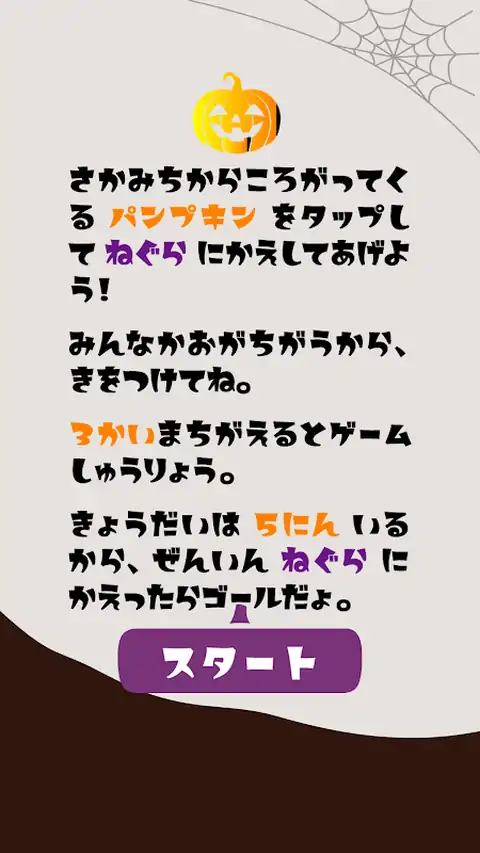 “南瓜兄弟”是一种发育障碍(自闭症、阿斯伯格综合症、注意力缺陷多动障碍(ADHD)、 这是一款针对有学习障碍和抽动障碍儿童的治疗和教育游戏应用程序。 这是一款适合残疾儿童的简单游戏应用程序。 ◆ 规则超级简单 ◆ 一个简单的游戏,您可以让从斜坡上滚下来的南瓜兄弟回到睡姿。 点击滚动的南瓜,将五兄弟送回他们的巢穴! 除了类似的南瓜,还有猫和蝙蝠从斜坡上滚下来! 如果您点击不同的南瓜脸、猫或蝙蝠三次,游戏就结束了。 找出正确的南瓜并将其放回原处,通关游戏并争取最佳时机
