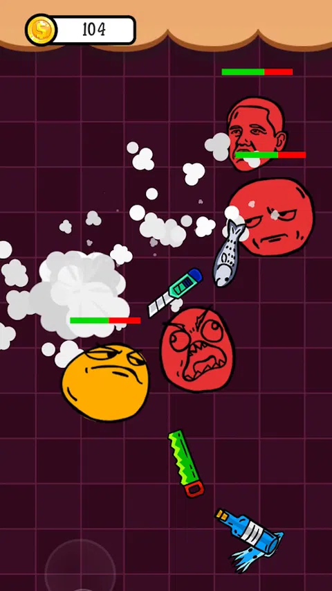 这是一款有趣且刺激的游戏。地图内所有的道具,无论是刀子、酒瓶、老鼠、锯子等,都将成为环绕你的武器。身边的武器越多,你的攻击力就越强,如果你没有武器,记得赶紧躲开靠近你的敌人