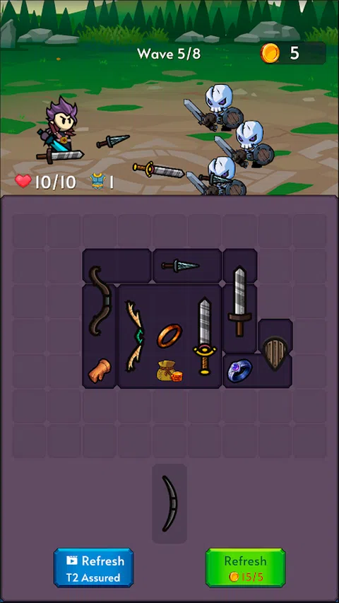 背包合并 - 战略库存战斗等待着您! 在《Bag Merge》中释放您的战略能力,这是一款激动人心的背包合并游戏,其中的每个决定都可能意味着胜利或失败!在这个迷人的冒险中,你控制勇敢英雄的库存,选择最好的武器、药水和物品,以帮助对抗强大的怪物和可怕的老板。 库存管理的艺术 您的库存空间有限,因此每个插槽都是宝贵的资源。你会保留那把强大的剑还是为健康药水留出空间?选择权在你手中,每一个决定都会影响你的旅程。您需要进行战略性思考,管理您的库存,以确保您始终为下一次遭遇做好准备。 合并和征服 通过合并库存中的物品来升级您的装备。组合两个相同的物品以创建更强大的版本,最大限度地发挥英雄在战场上的潜力。但要小心