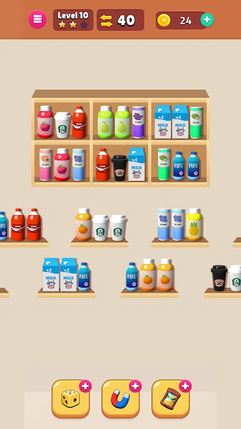 Triple Sort Master 3D 是一款引人入胜且令人上瘾的移动益智游戏。在游戏中,玩家需要将架子上的物品排列成匹配的三个一组,以使它们消失。Goods Sort 具有各种级别和逐渐增加的难度,提供令人兴奋且具有挑战性的游戏玩法。最棒的是,它可以离线播放,让您随时随地享受游戏,无需互联网连接。尝试一下,看看你能征服多少关卡