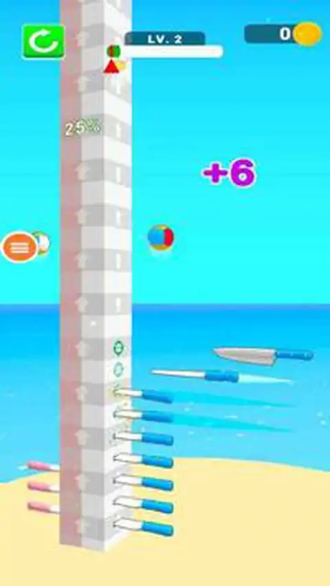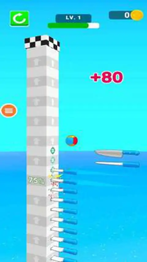 你是眼疾手快的飞刀达人吗?来玩一把测试一下吧!点击屏幕,把飞刀扔出去,小心千万别碰到球球,不然游戏就结束啦!挑战你的反应与手速的极限