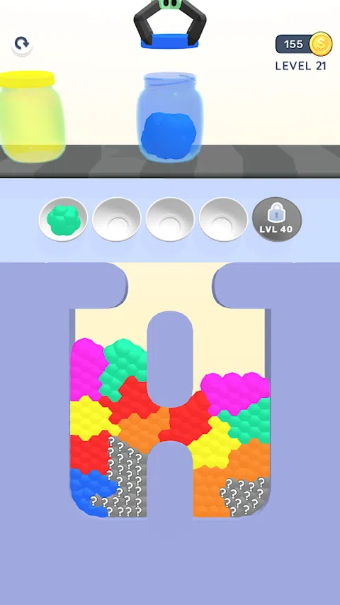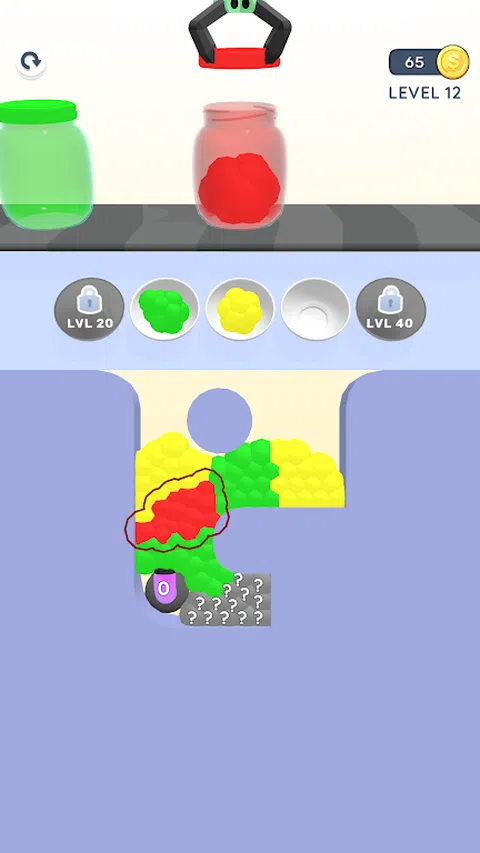 根据颜色对果冻进行分类,然后装满罐子