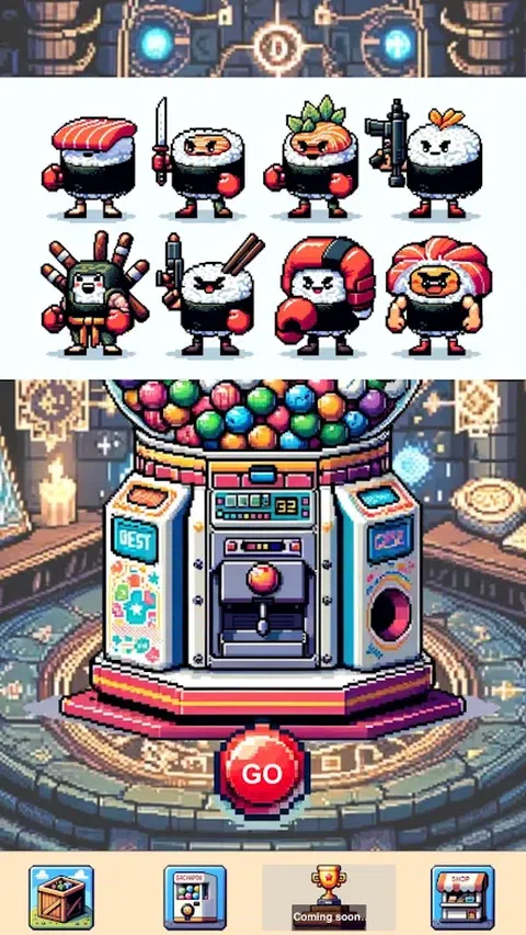 Gachapon GO 是一款令人兴奋的手机游戏,将胶囊玩具自动售货机的快感带到您的手机上。 我们定期用制作精美、引人入胜的胶囊来补充我们的收藏,涵盖广泛的主题。其中包括动物、家居用品、怪物、火车、建筑物、宝石、龙种、精美的配饰、稀有武器等等。 只需轻点旋转按钮,一个胶囊就是你的!测试您的运气并收集特别稀有的胶囊,向您的朋友炫耀。让我们一起沉浸在乐趣中