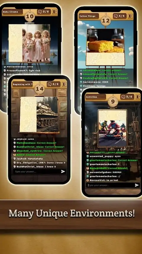 ? 想象一下?正如在 TikTok Live 上看到的那样? 准备好潜入一个世界,在这个世界中,您的图片猜测技能将受到终极考验!“想象一下?”将您带入令人振奋的快节奏猜谜游戏,就像 TikTok Live 上数百万人玩的游戏一样。 ? 引人入胜的游戏 ? 如果您选择接受它,您的任务就是尽快猜测正在显示的内容!与世界各地的玩家和时间进行激动人心的赛跑,抢在其他人之前破译图片。从简单的物体到标志性的流行文化参考,你的快速思维和敏锐的眼睛将引导你走向胜利! ?挑战并接受挑战? 认为您是这片土地上最快的猜测者吗?在我们充满活力的挑战竞技场中测试您的技能,在那里您可以与全球的朋友和玩家竞争。每张图片都是一次新的冒险,每一次猜测都会让您更接近成为图片吗?冠军! ?画面完美的氛围? 沉浸在视觉上充满活力和风格的游戏环境中,让您的感官保持愉悦。直观的界面和时尚的设计,在游戏中度过的每一刻都对您的眼睛来说是一种享受! ?功能? 无限图片拼图:大量的类别和主题,让猜谜充满乐趣和新鲜感! 实时排行榜:随着您在全球排行榜的排名攀升,跟踪您的进度并炫耀您的分数![即将推出!] 社交互动:在猜图决斗中挑战朋友、家人和随机对手![即将推出!] 可定制的头像:通过一系列个性化选项为您的游戏中角色表达自己! 加入乐趣,与世界竞争,并成为下一个大游戏轰动的一部分!上图?您成为终极猜谜大师的旅程现在就开始